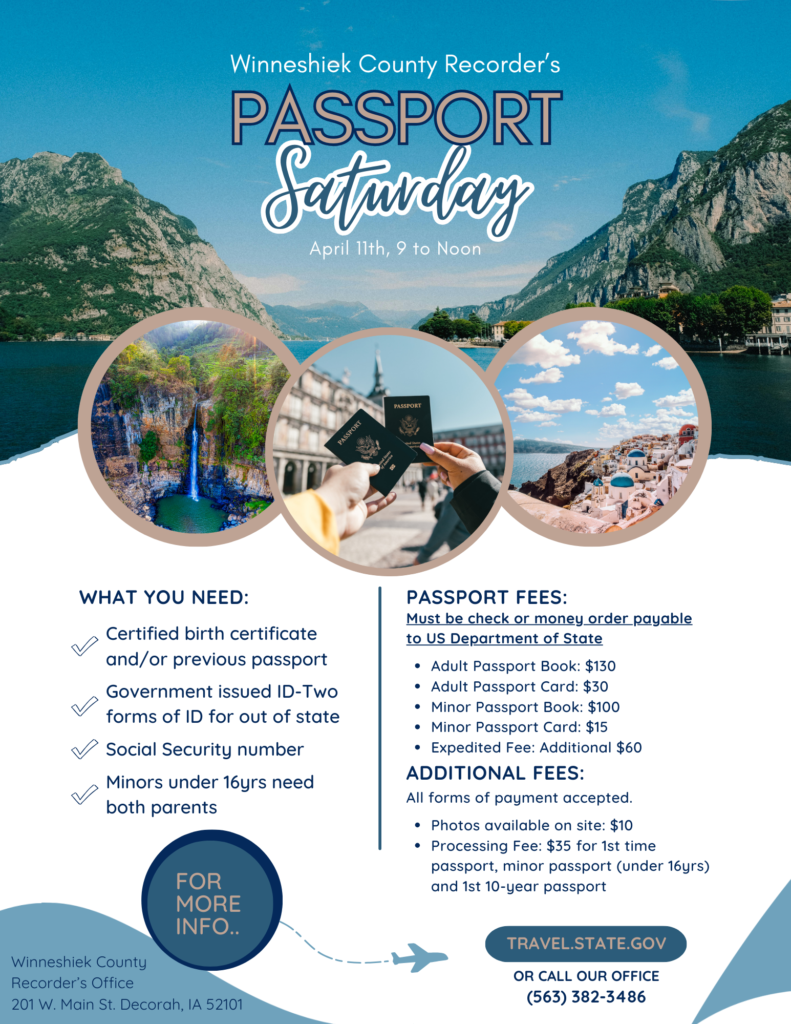 For more information visit travel.state.gov or contact us at recorder@co.winneshiek.ia.us or (563)382-3486